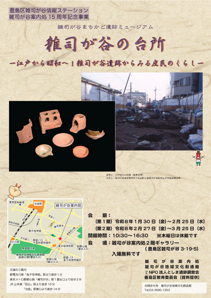 | 雑司が谷案内処や雑司が谷界隈の名所などを紹介する『案内処と雑司が谷展』を常設展示しています。 開設10周年を記念し、令和2年7月31日より、手塚治虫作『白骨船長』より鬼子母神伝説に関するパネルを常設展示に追加しました。あわせて、『白骨船長』の作品全ページもお読みいただけます。 |